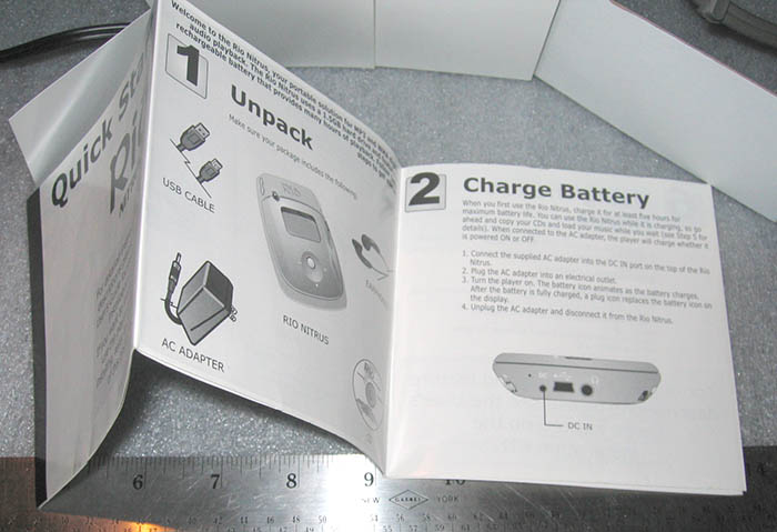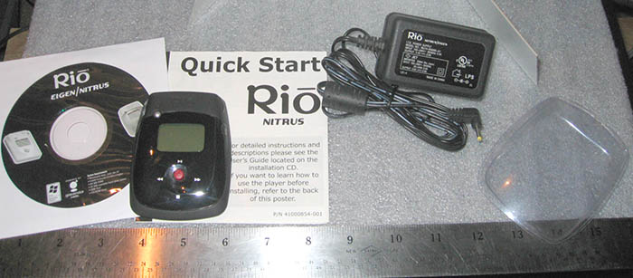 Fast USB 2.0 connection (the new USB cable is not shown but is included) loads the player quickly. Along with the USB cable, you get everything shown in the top picture, which is everything that came with it new, except the plastic package, and you get part of that too (more on that below).