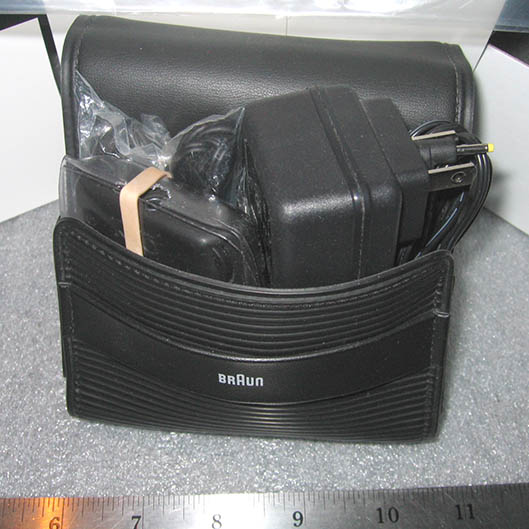Here you see everything except the headphones and USB cable packed into a Braun