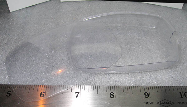 Here (above) you see the clamshell I cut out of the plastic theft-proof packaging it came in. Since no case is provided, I decided to cut the theft-preventive package so that the molded part holding the player remained intact and able to use separately, as a clam shell. I trimmed the edges to round them and cut recesses to allow the plugs to be used when the unit is encased, if desired. Below you see it in the shell, secured with a rubber band. This was a good protective measure for transporting it, since all the scratches you see would have otherwise been on the player.