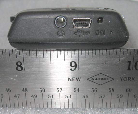 Here you see the USB port, ear bud/headphone/lineout jack, and the DC power input plug.