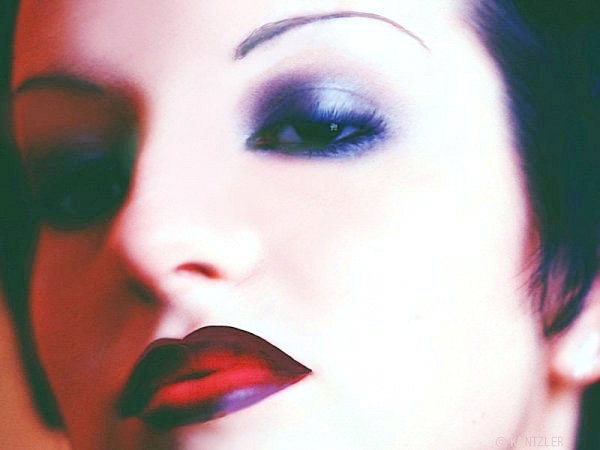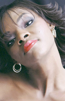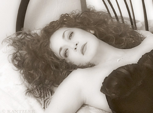Final prints can be created in color, black & white, or as the image above, a representation of traditional, hand-painted black-and-white photography. The color negative is scanned into a computer and its color balance, brightness and other needed enhancements are completed. Then, the color saturation of key features, such as the model's lips and opal pendant, is increased, followed by a reduction of the total image color to a very pale, pastel watercolor. Finally, the image is filled with a selected color (in this photograph, a mauve-type pink instead of the usual sepia) at a level of saturation just below the true colors, approaching a monotone. The lovely model's natural colors are then rendered so subtly that they are felt more than they are seen. The image may then be printed or prepared for the Internet.