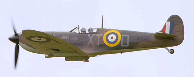 Directly above is a photo of the real-life, in-flight, BBMF Spitfire from which the replica being offered is based, with the very same XT-D and P7350 designations and markings.